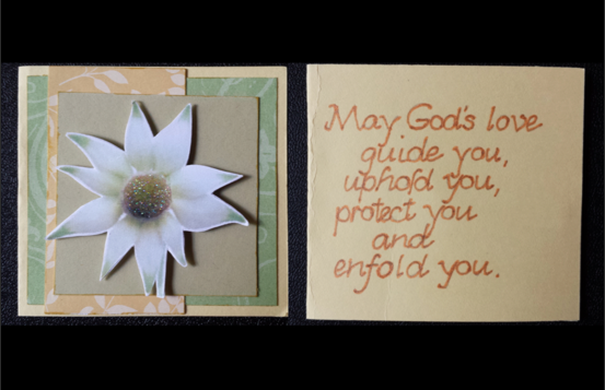 Helen’s beautiful little handmade cards were originally made to be gifted with the Comfort Cushions. They were very soon sought after in their own right!