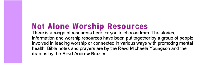 Not Alone Worship Resources are produced by the Methodist Church UK to raise awareness about mental health.