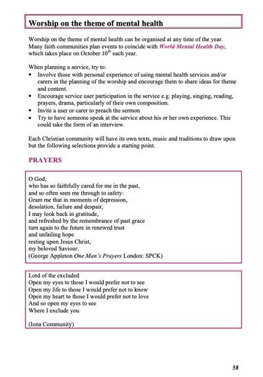 SEE: WORSHIP ON THEMES OF MENTAL HEALTH. (pp.58-67)