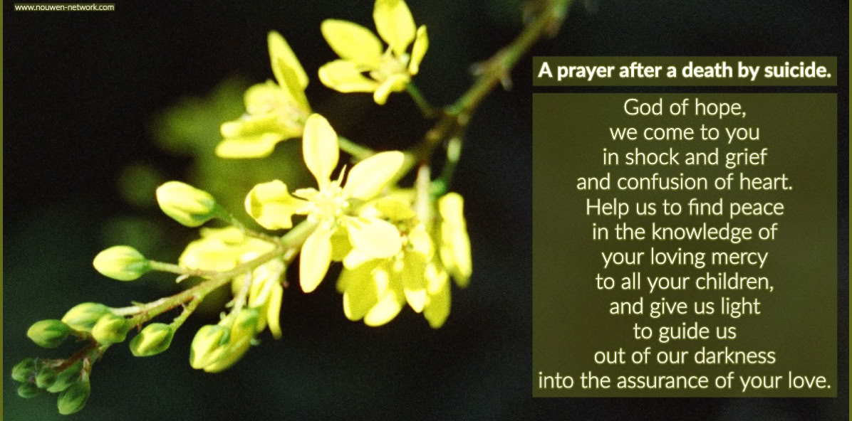 “Prayer with a person experiencing loss from suicide is a time to listen, to sit still, and to be present. It is a time to make space for expressions of rage, of agony, of astonishment, and of rejection of faith. It is a time to make it possible for stories to be told about loved ones now gone. “Tell me what your mother is like.” “What is one of your favorite memories?” You might ask someone how he or she imagines the moments after the loved one’s death. You do not have to find those ideas compatible with your own or give a lecture about Christian doctrine—your call is to offer the survivor the gift of attentive listening. It can be difficult to remember that companionship and prayer in silence can be much more effective than words, no matter how eloquent, when the unthinkable has happened. A willingness to stay with someone through the wilderness is of far more significance than the most profound speech made in an attempt to lead someone prematurely into a space of healing.”