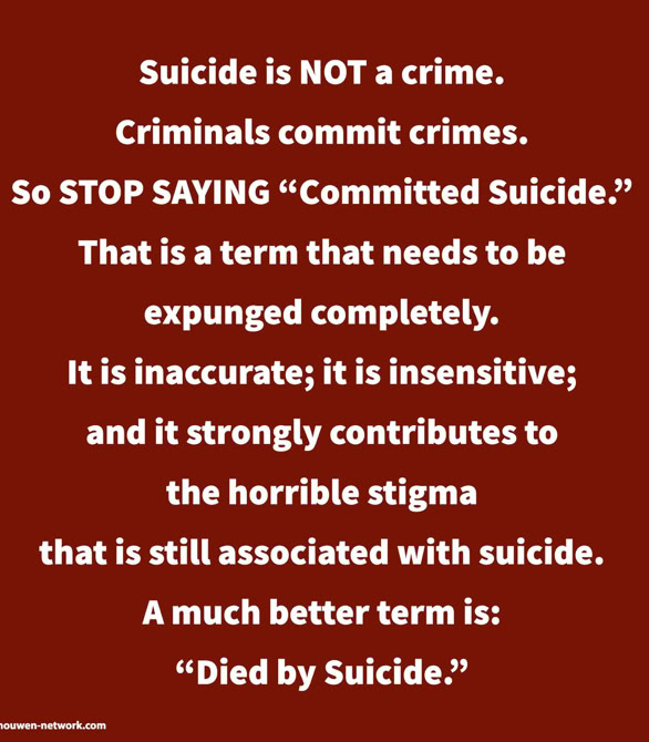 “So what can you say to destigmatize suicide and create a climate of healing and support? Experts suggest the following:
