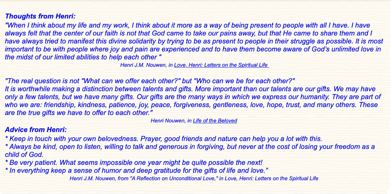 Examples of the earliest of these introductory Nouwen quotes have been archived chronologically (by e-Update) here.