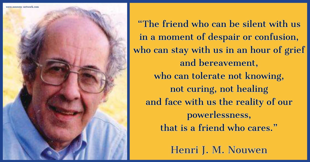 Blessed are those who, when nothing can be done or said, do not walk away, but remain to provide a comforting and supportive presence — they will help the sufferer to bear the unbearable.