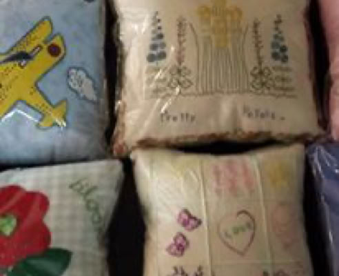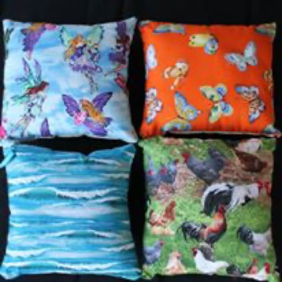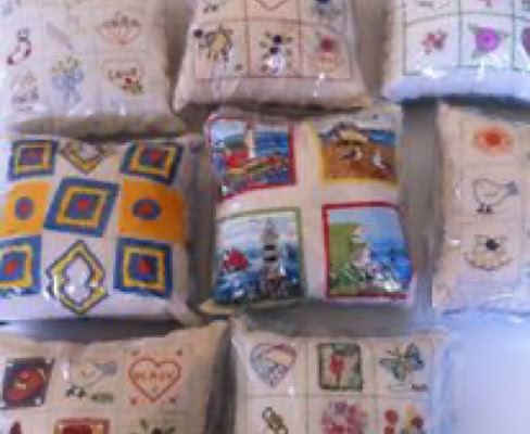 When possible we give a Comfort Cushion to people who are inpatients of psychiatric wards and community care units. However, as hospital beds are hard to secure, and many who are very unwell are treated as outpatients, we also give these cushions to people who are at home. Those who live alone or in hostels are a priority, but pain and loneliness can be savage despite the companionship of a loving family. Our Comfort Cushions are being gifted wherever a network member feels the Spirit prompts them to take one. At times this outreach extends to a family member of a person with a mental health issue. Many suffer greatly when their loved ones are hospitalized, unwell, or out of contact with them. They are often exhausted and feel quite alone. The generosity of a small number of prayerful craft persons has allowed us to gift cushions at a steady rate. The embroidery on many cushions has been of a very high standard but this is not a benchmark for participation. Every cushion is unique, and the recipient is prayed for as it is made. They have all been very beautiful. We need diversity – cushions for young people, and cushions that will appeal to men as well as women. Some stunning cushions have been made using applique rather than lots of embroidery. There are many fabrics available that have restful, comforting images on them that are great appliqued onto the front panel of a little cushion. (We had no trouble finding homes for some that had images of cats, birds, farms and seascapes stitched onto them. Cushions with some bright geometric shapes went quickly also).”