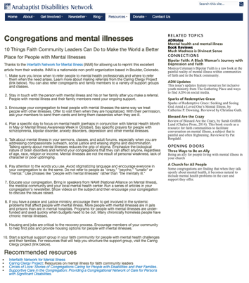 This is an ADN Resource Info Sheet (formerly ADNotes) from Anabaptist Disabilities Network [This article is Reprinted from Interfaith Network for Mental Illness (INMI)]