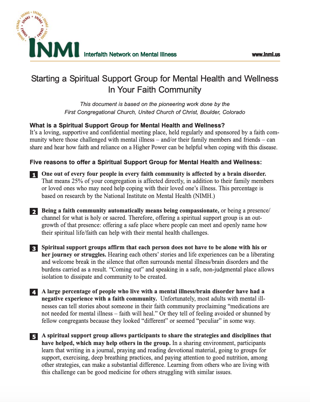 Starting a Spiritual Support Group for Mental Health and Wellness In Your Faith Community - A resource from the Interfaith Network on Mental Illness (INMI)