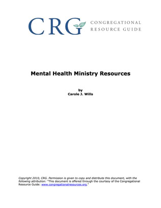 Congregational Resource Guide: Mental Health Ministry Resources, an Annotated Bibliography by Carole J. Wills.
