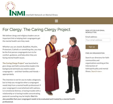 The intention is not for you to make a diagnosis, but to help you recognize when a congregant needs help from a mental health professional. This is a resource from the Interfaith Network on Mental Illness (INMI)