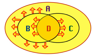 The arrows in the diagram represent the expansion in participation that we seek, viz.