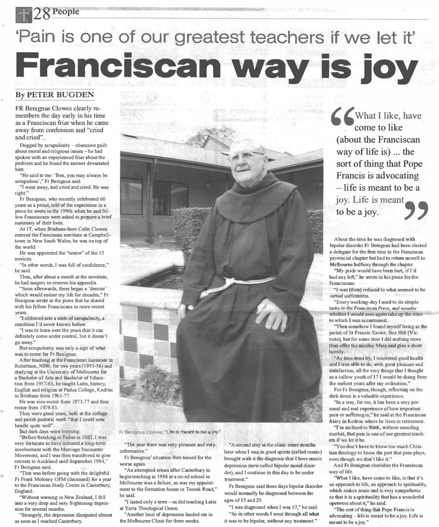 ‘Franciscan way is joy’ by Peter Bugden - September 16, 2014