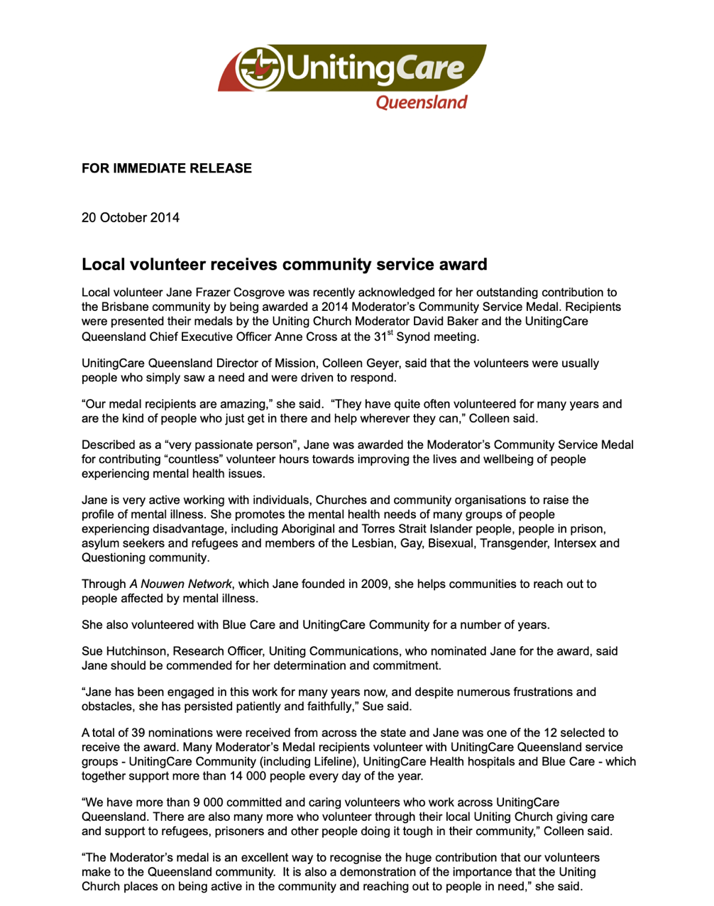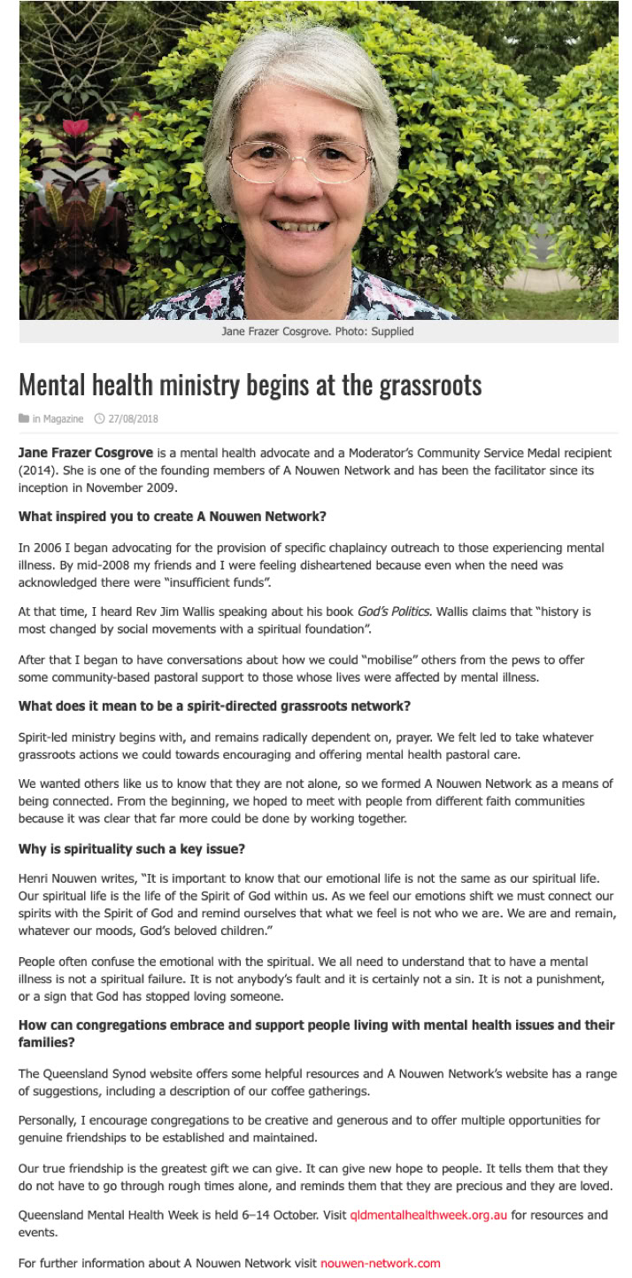 A selection of media articles featuring A Nouwen Network’s members, activities and awards.