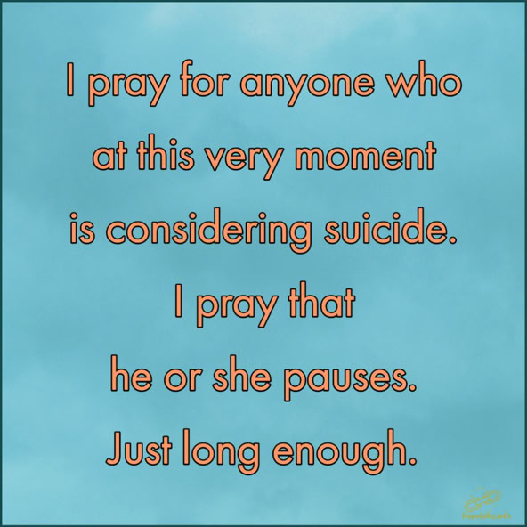 Lord Jesus Christ we ask that you help everyone who is suicidal.