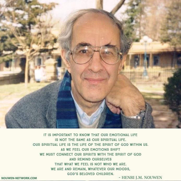Thus it is important to know that our emotional life is not the same as our spiritual life. Our spiritual life is the life of the Spirit of God within us. As we feel our emotions shift we must connect our spirits with the Spirit of God and remind ourselves that what we feel is not who we are. We are and remain, whatever our moods, God's beloved children.