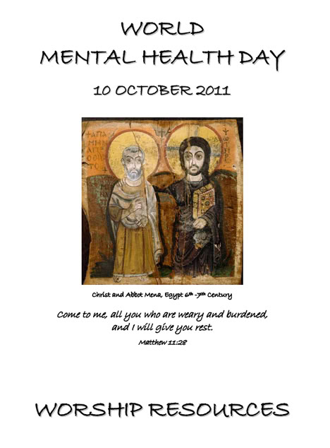 ‘World Mental Health Day 10 October 2011 Worship Resources’ was prepared by Revd Cathy Wiles while at the Department of Spiritual and Pastoral Care South West London & St George’s Mental Health NHS Trust. Springfield University Hospital, London. The introduction to the booklet states “Please feel free to use these resources as you require. An acknowledgement in your service sheet or during your worship would be appreciated.”