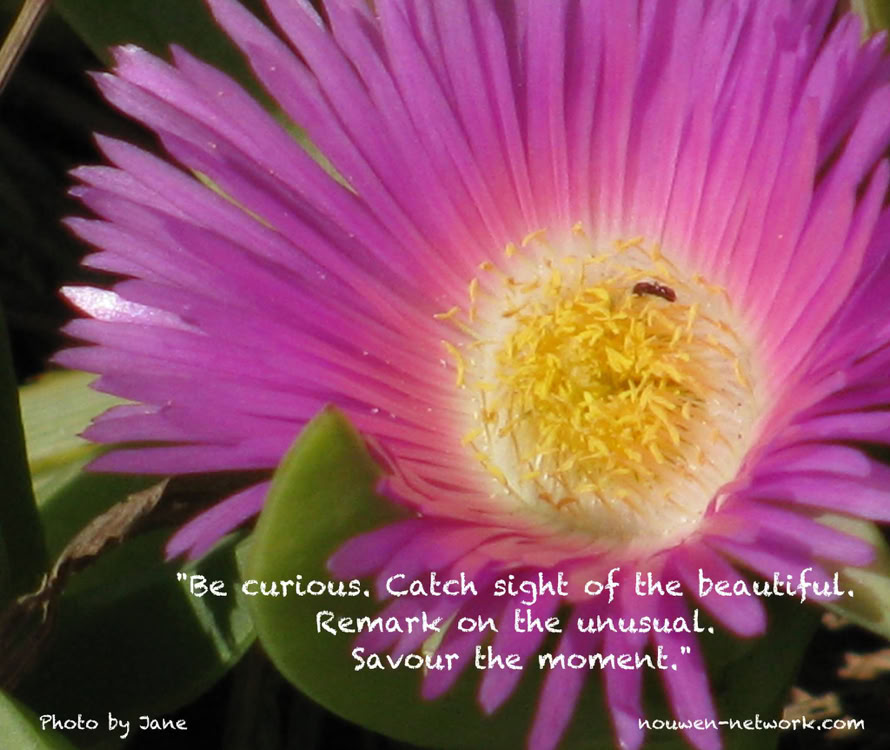 ‘ “Knowing” is more than just head knowing. It can be a deep soul and body knowing that transforms how you live in this world. …take time to recognise the presence of the Holy in your everyday life …contemplate and savour those moments. These graced moments can transform you, body, soul, mind and spirit. By reflecting on them again and again you realise the presence of God in your daily life and receive guidance to become wholly yourself, truly alive.”