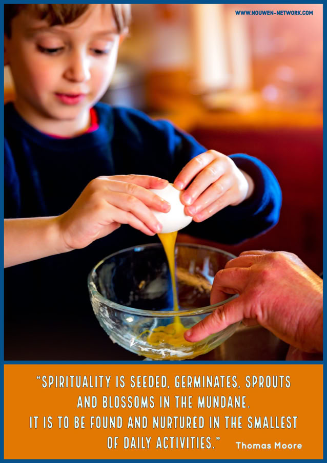 ..."Spirituality is seeded, germinates, sprouts, and blossoms in the mundane. It is to be found and nurtured in the smallest of daily activities. The spirituality that feeds the soul and ultimately heals our psychological wounds may be found in those sacred objects that dress themselves in the accoutrements of the ordinary."