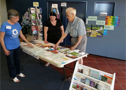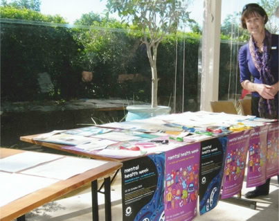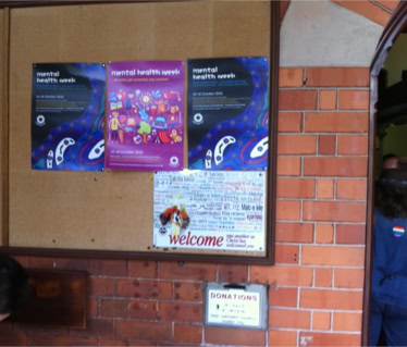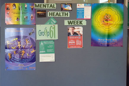 • Distribute mental health factsheets, and flyers from community based mental health support groups [eg.
